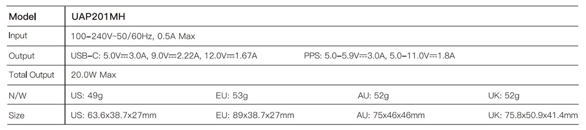 UAP201MH / UAP202MH 20W Wall Charger 20W PD fast chargerDual output portsCompact designIdeal for丨Phone & iPad